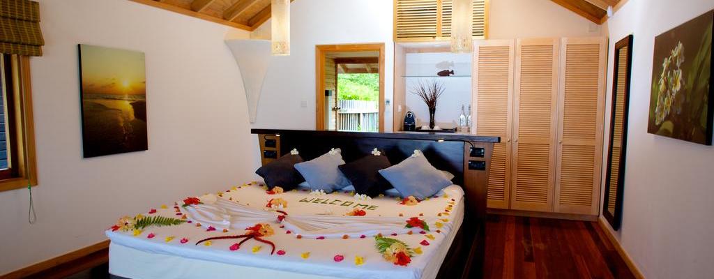Beach bungalók a sziget északi oldalán helyezkednek el. Alapterületük 56 m2, a hálószobák tágasak, nyitott fürdőszoba tartozik hozzájuk.