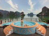 A korai ebéd elfogyasztása után még élvezhetjük a Halong öböl látványát a fedélzetről.