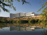 Egy kis domb tetején épült ez a hajó alakú szálloda, közvetlen a Qurum tengerparton. A szálloda a reptértől 15-20 percre, Muscat központjától 15 km-re fekszik.